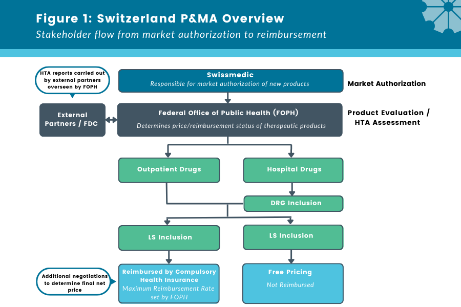 2020 MEA Legislation[2]: In 2020, a Managed Entry Agreement (MEA) legislation was established by Switzerland’s Ministry of the Interior to address ongoing P&MA challenges such as time to reimbursement and the restrictive ability to achieve a premium vs. comparator. The legislation sought to establish confidential market-access schemes, specifically three types of MEAs (price refunds, sales volume limits, and pay-for-performance). This provides manufacturers the opportunity to negotiate confidential net prices.